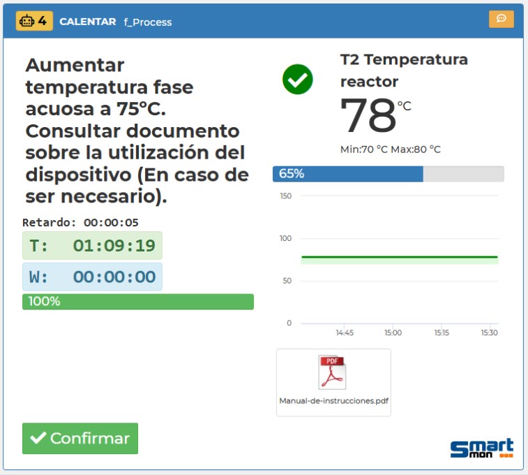 - Registro y trazabilidad completa: Tiempos, usuarios, resultados, incidencias y firmas quedan asociados al lote en un EBR listo para auditoría.
